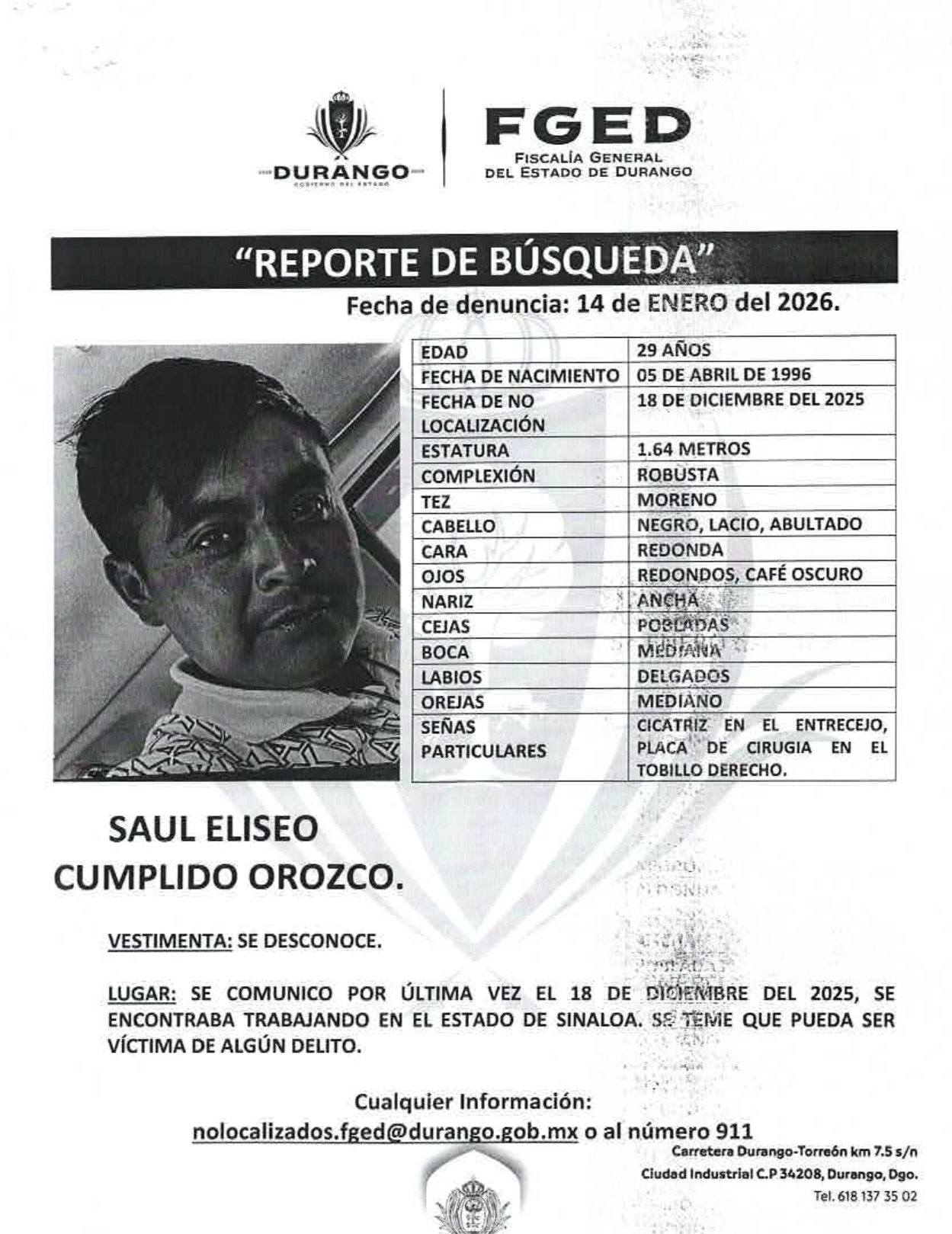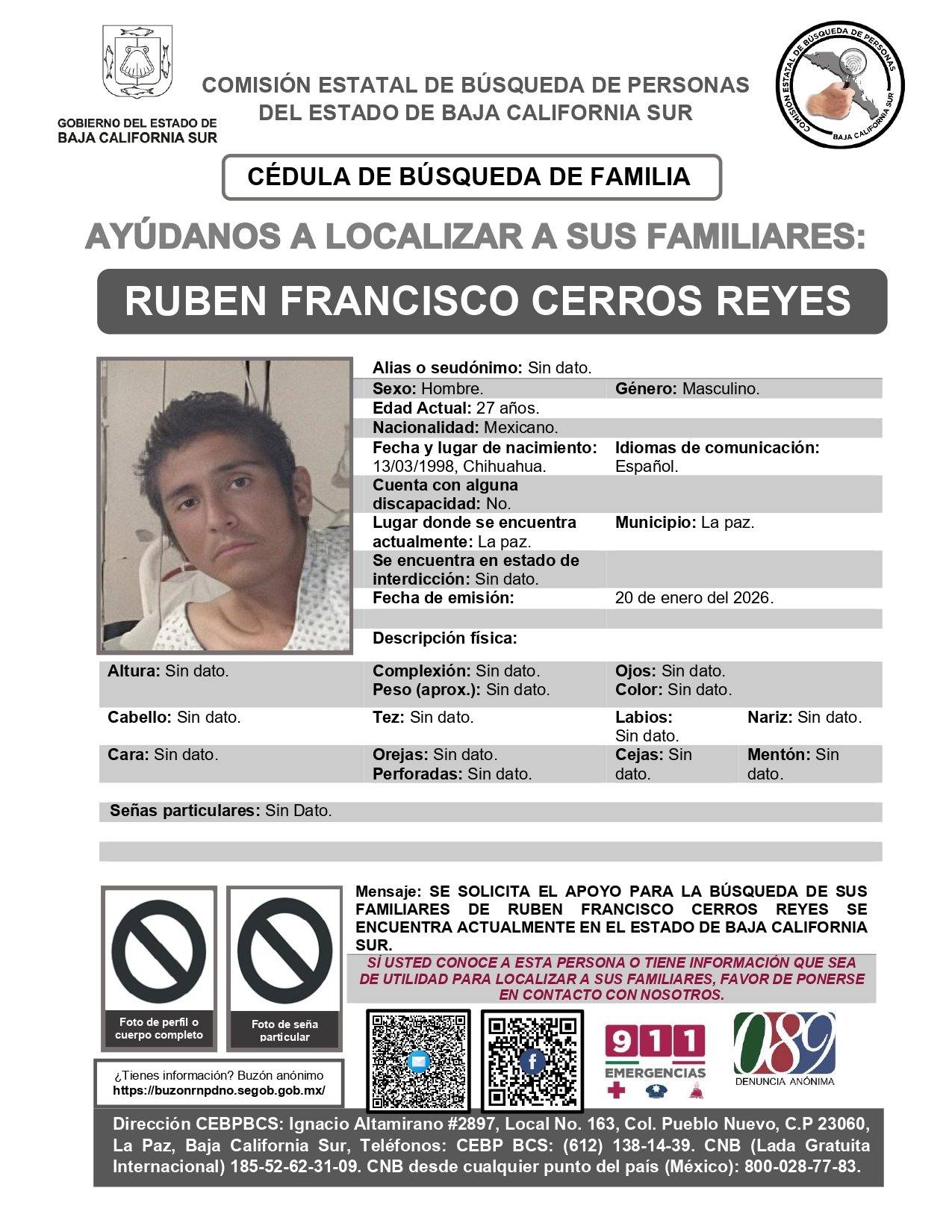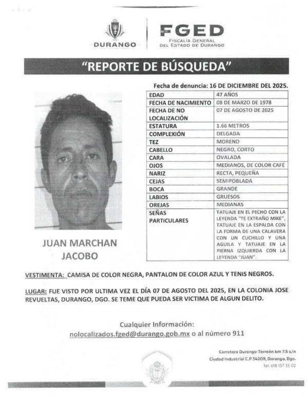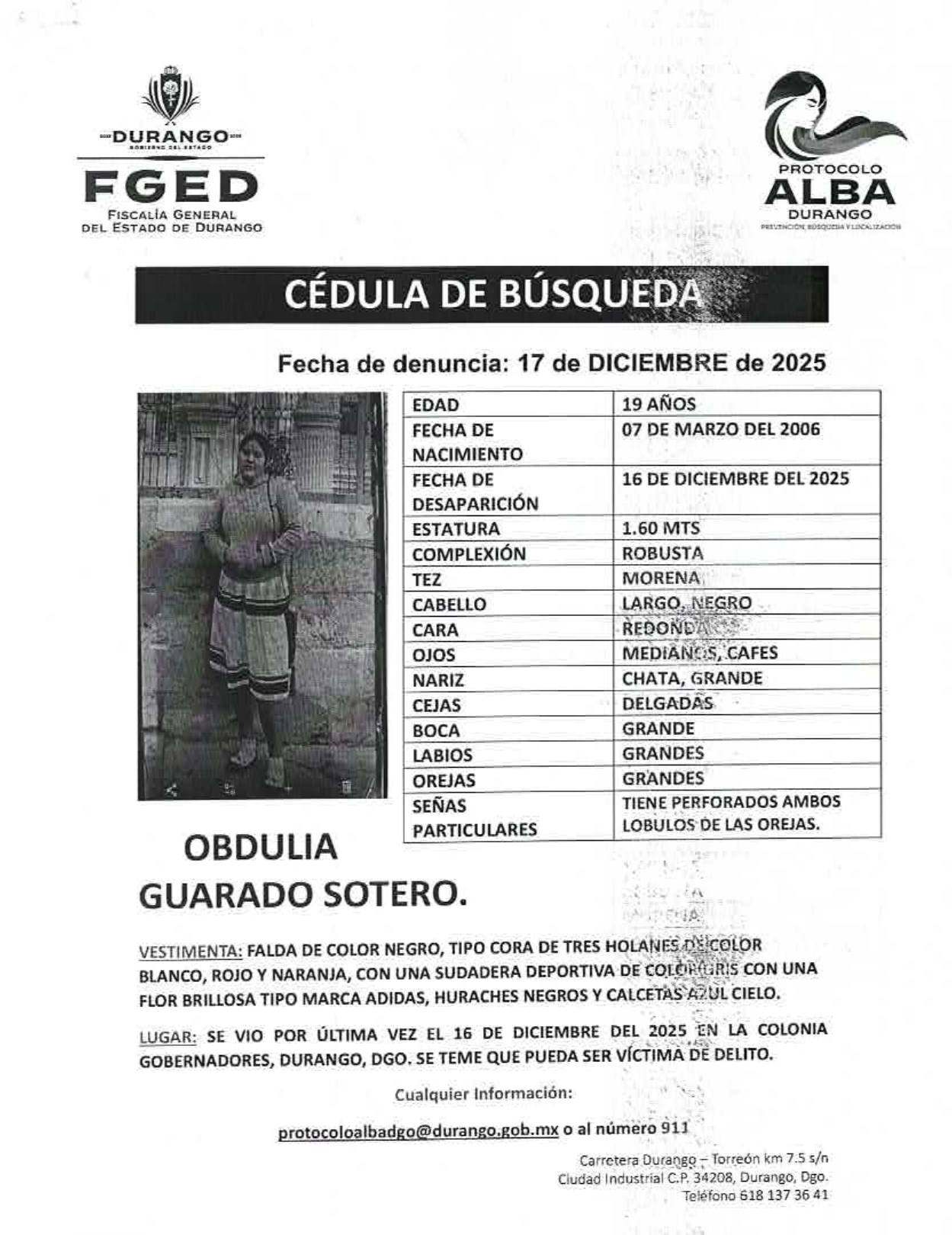 Cédulas de personas desaparecidas foráneas