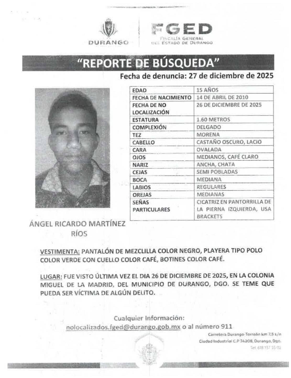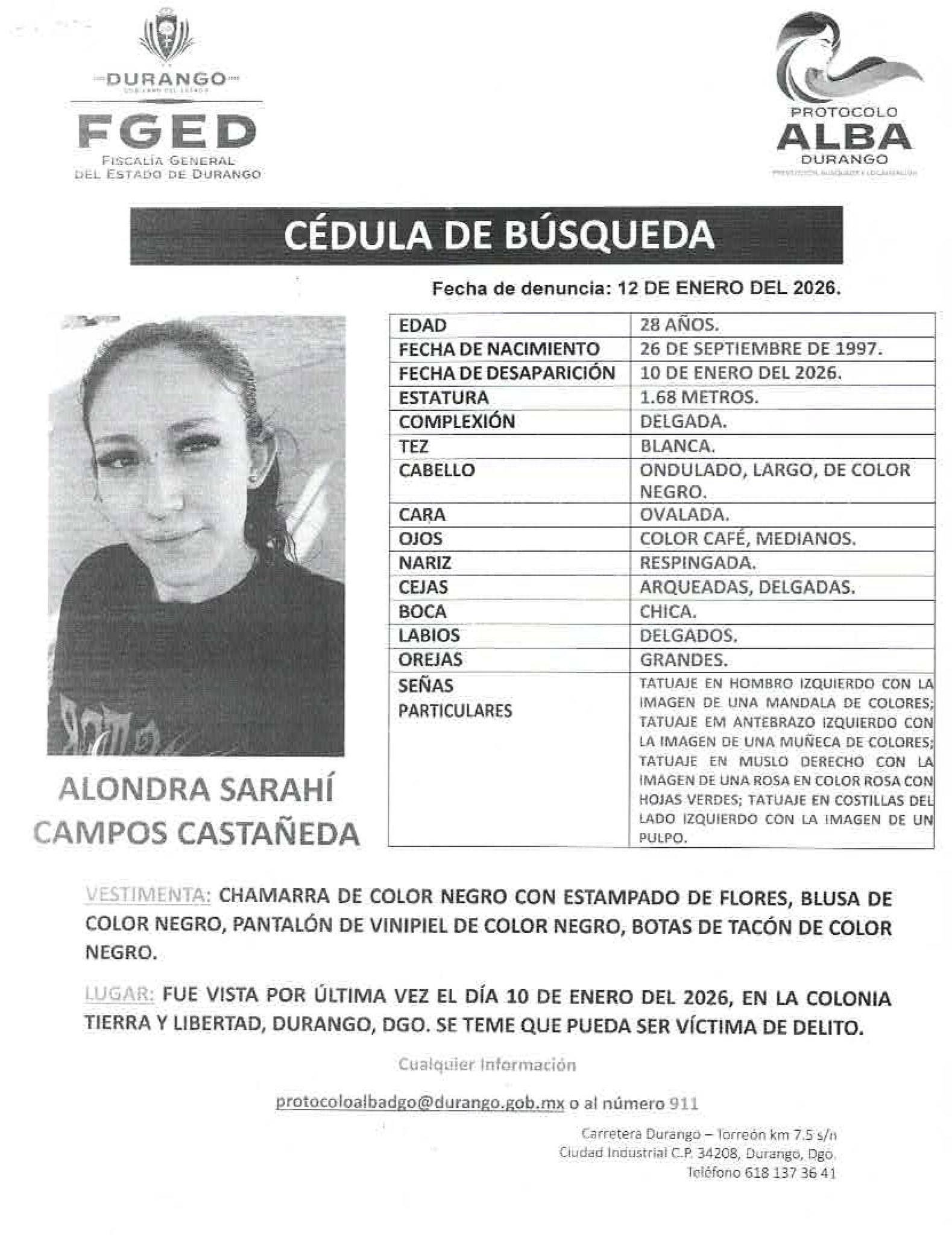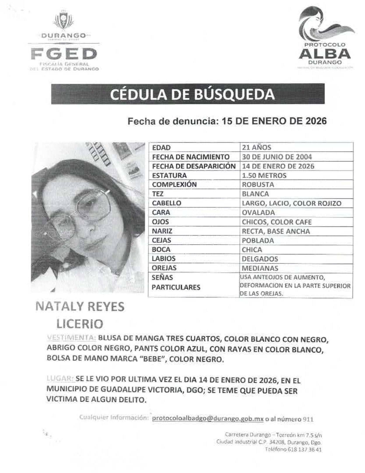 Cédulas de personas desaparecidas foráneas